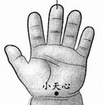 7、小天心位置:手掌面大小鱼际交接处。